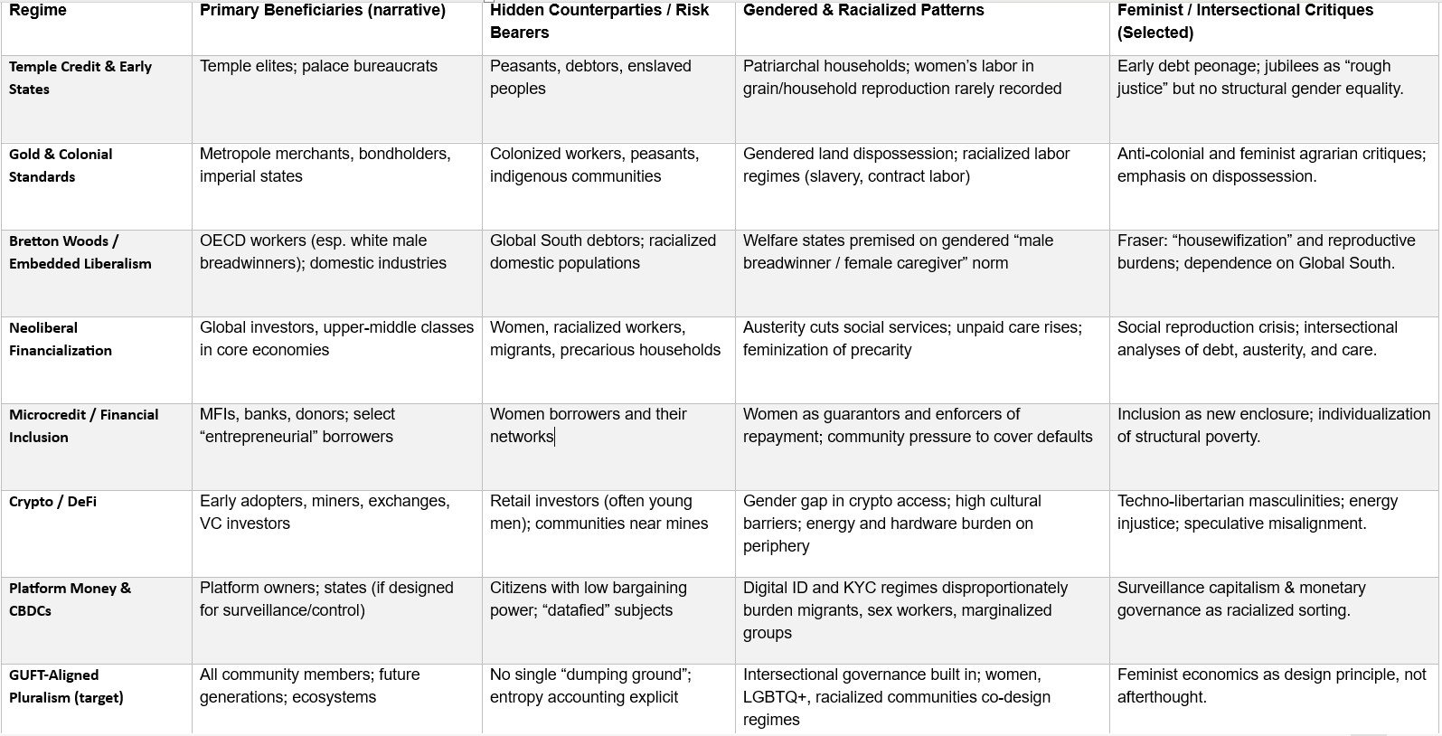 This section centers feminist and intersectional critiques not as “add-ons” but as core diagnostics of monetary coherence.