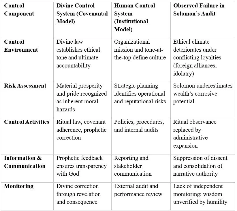 Solomon’s Folly, when recontextualized through the lens of internal control, is not a story of divine punishment but a case study in the governance of power. His wealth was not reward but reconciliation as an exposure test demonstrating that the acquisition of wisdom demands the same fiduciary oversight as the management of capital.