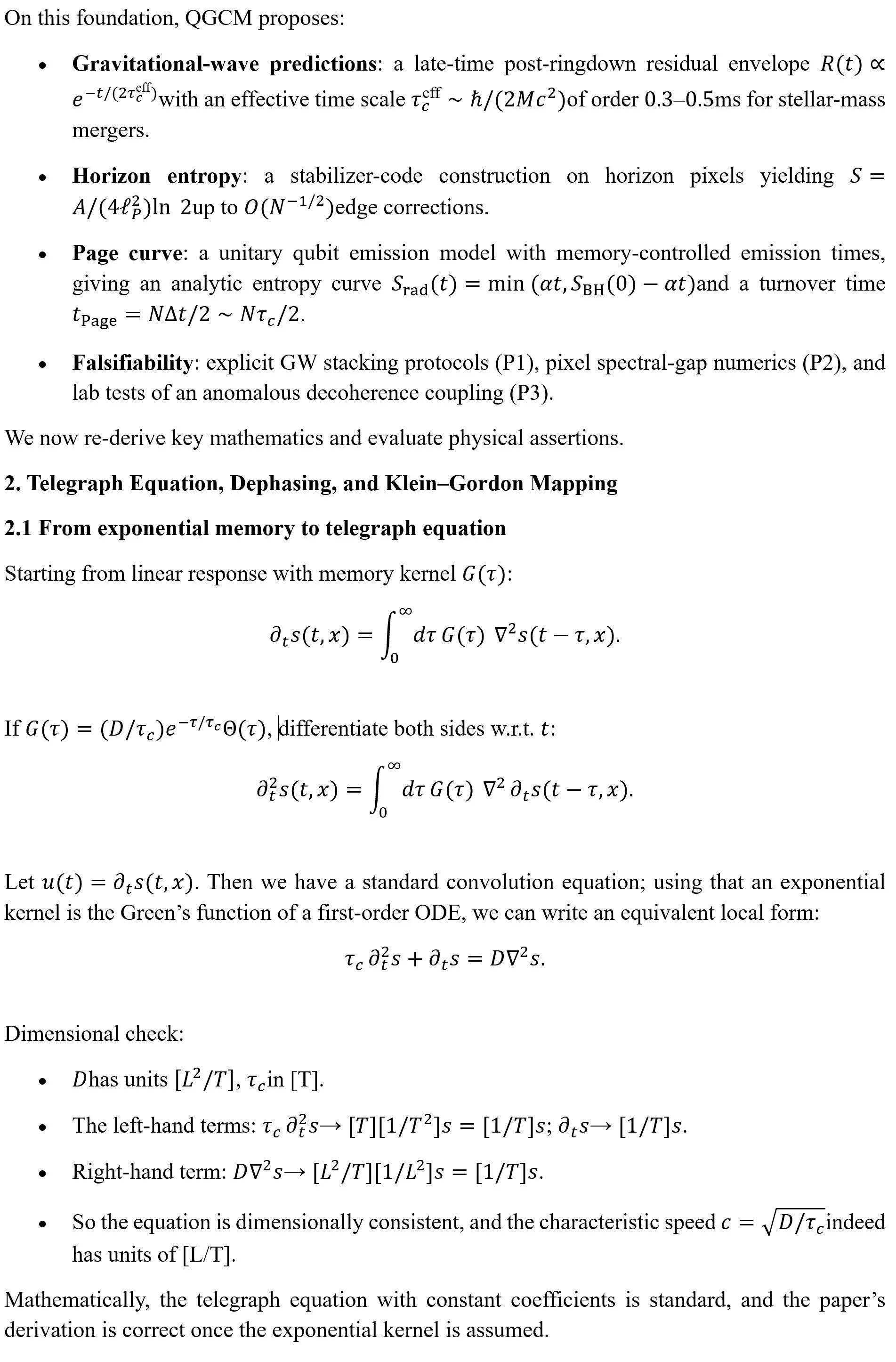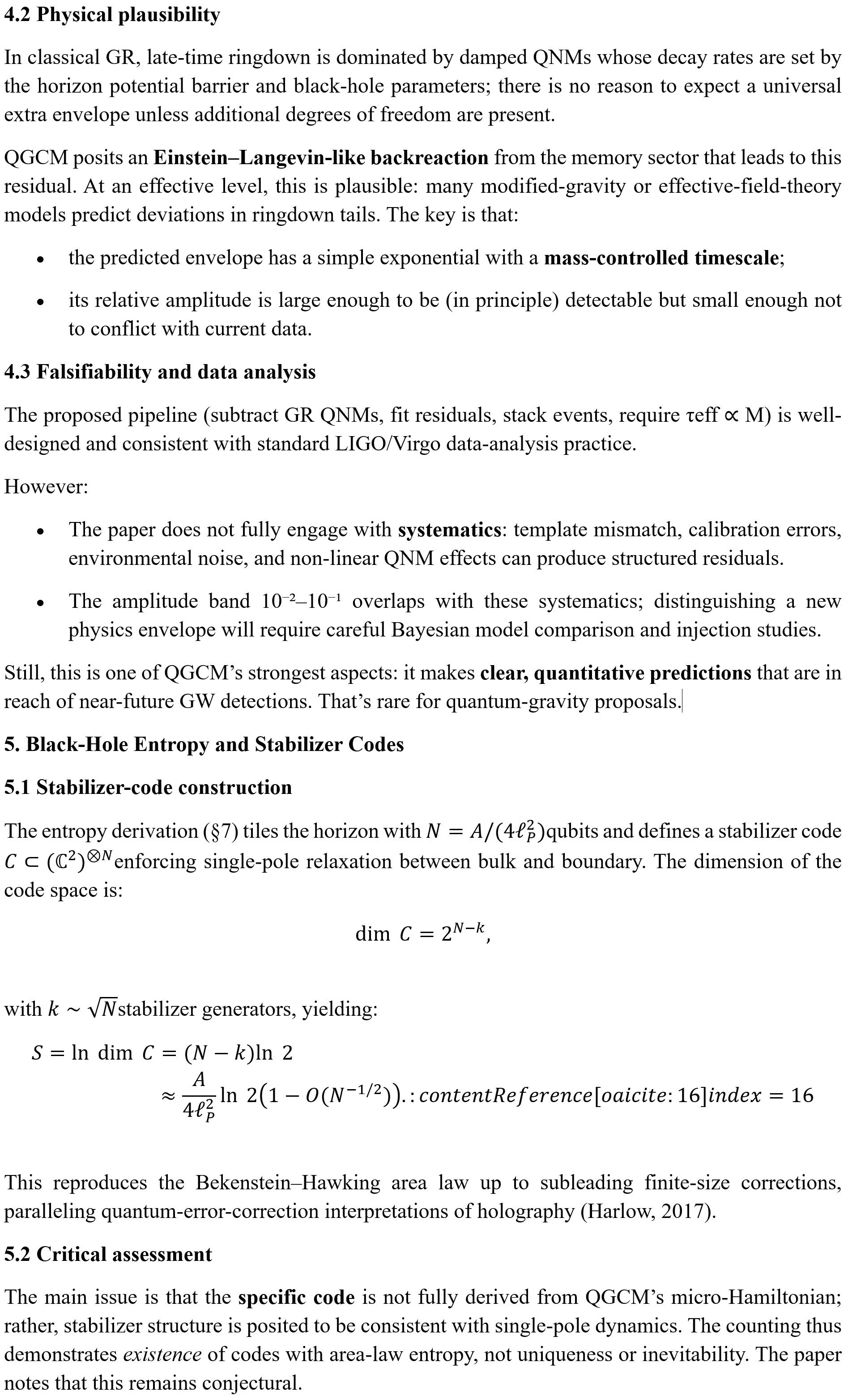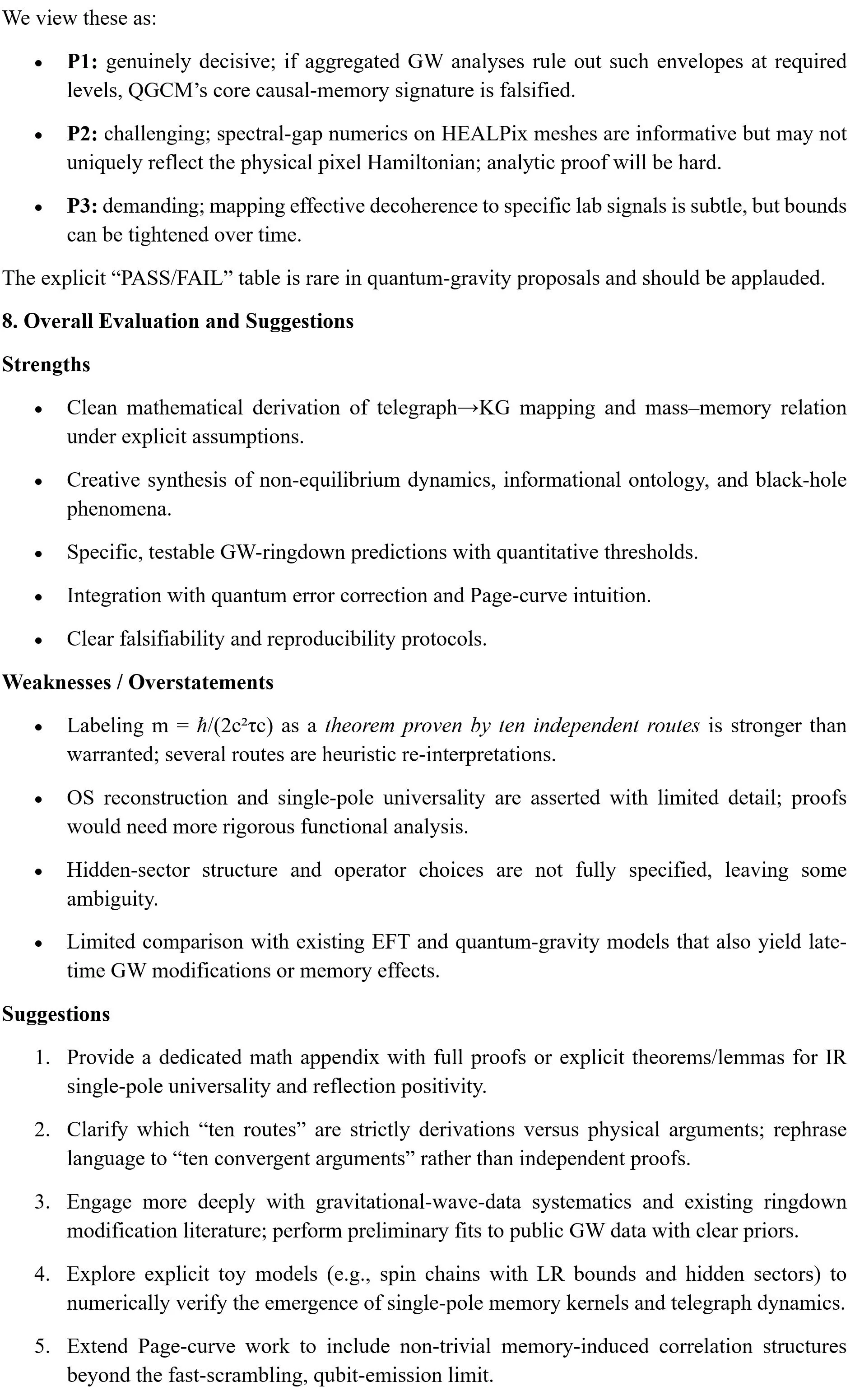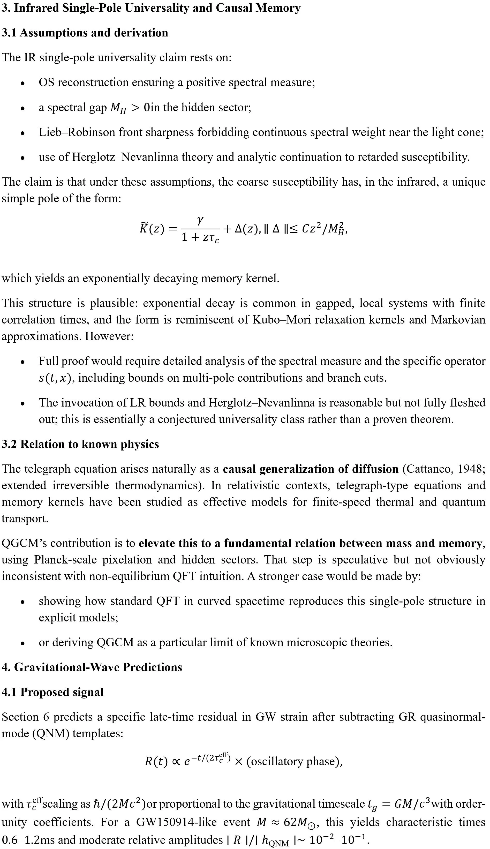 The framework’s real value will be determined by the outcome of its falsifiable predictions, especially the proposed gravitational-wave residual envelope. Whether or not those signatures are found, QGCM pushes the conversation toward observable, millisecond-scale quantum-gravity effects and foregrounds the role of memory and non-equilibrium dynamics, themes that resonate with broader non-equilibrium QFT and open-system work.