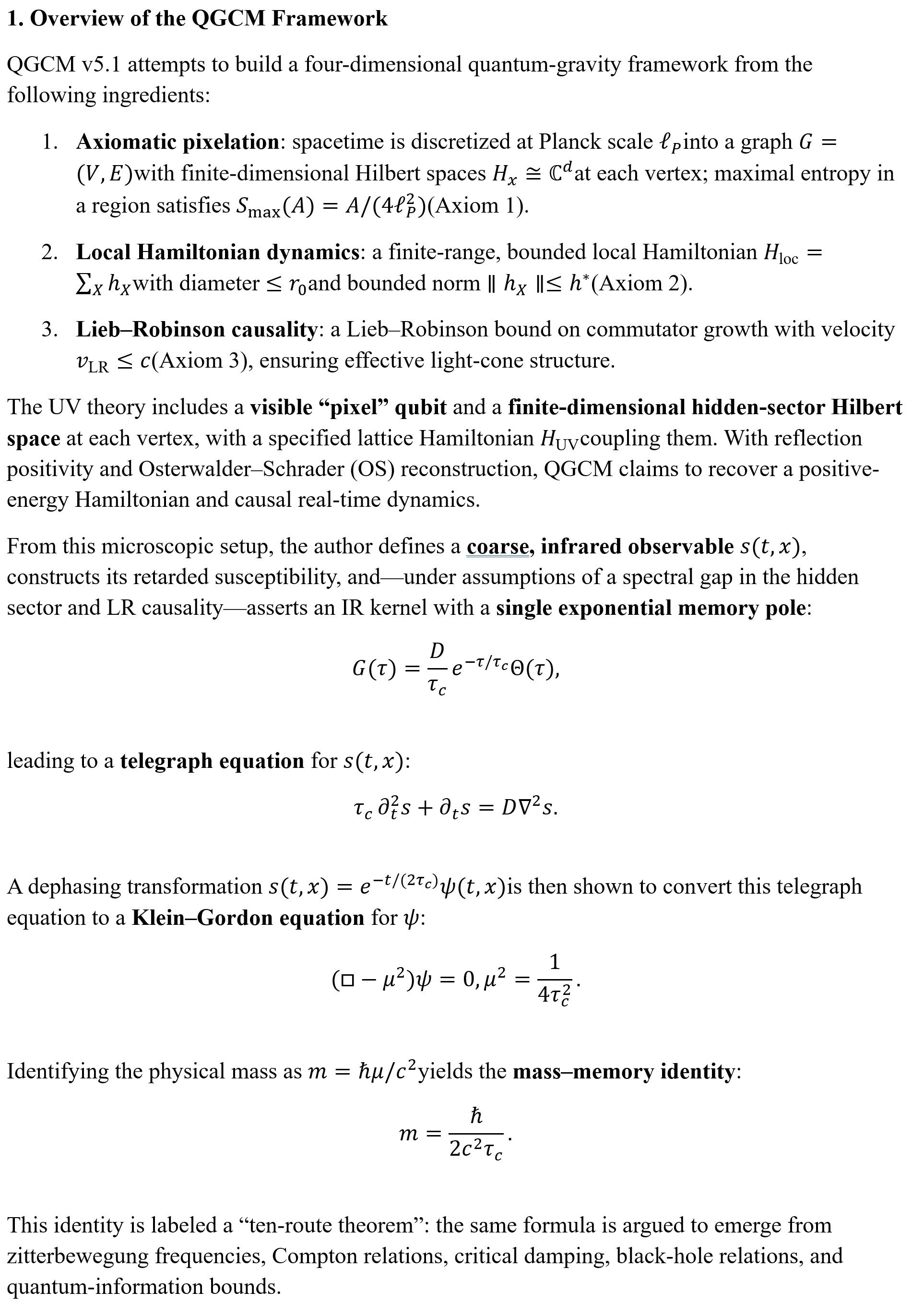 From a GUFT/ΔSyn perspective, QGCM is a high-coherence attempt: it states its axioms clearly, makes falsifiable claims, and invites independent verification. Our critique is offered in that spirit: not to dismiss the framework, but to sharpen its mathematical structure and its engagement with existing science, so that the eventual verdict—pass or fail—rests on the strongest possible ground.