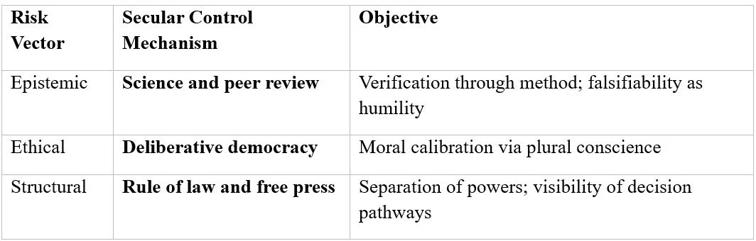 Where divine law once guaranteed order, we must now build assurance through openness, evidence, and care. Risk assessment becomes a moral art: to know the failure modes of freedom and design for their repair.