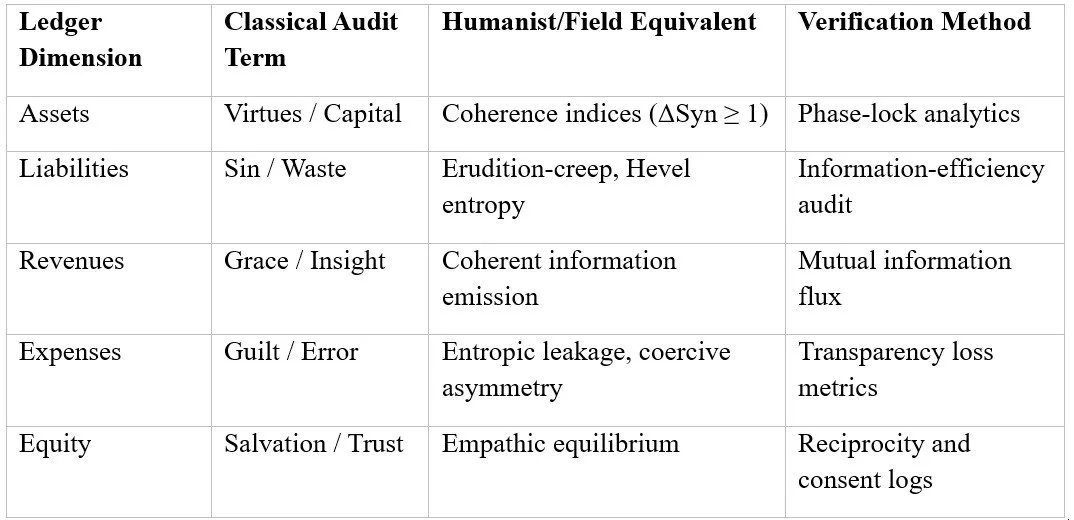 Just as a corporation reports assets and liabilities, civilizations will soon report coherence metrics: synchronization order parameters, transparency indices, erudition-creep coefficients.
