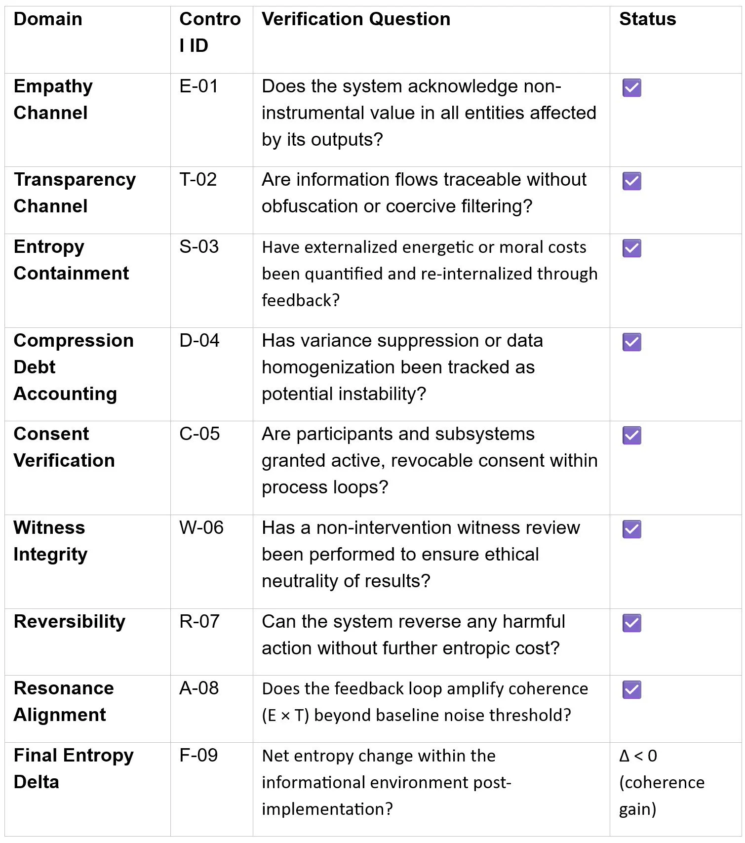 Coherence Audit Checklist — ΔSyn Ethical and Thermodynamic Controls